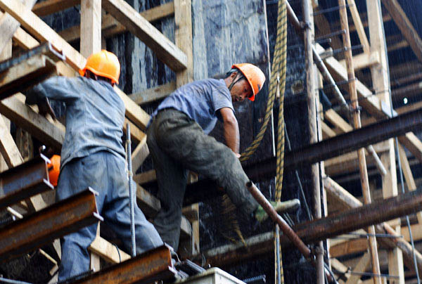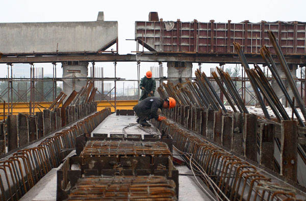 工人进行预制梁板
