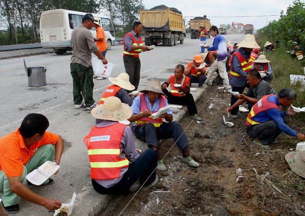 天当屋顶地当桌,工地午餐分外香!
