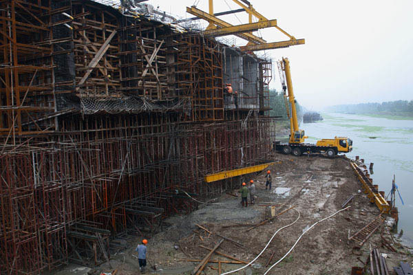 通榆河大桥主墩全部完成,进入上部结构施工