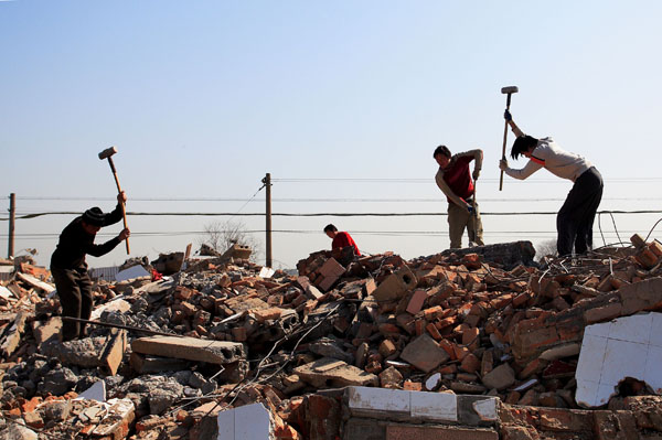 二、亭湖区南洋镇三洼村的拆迁户在拆除自家房屋