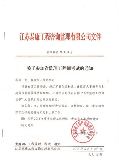 江苏泰康工程咨询监理有限公司热忱欢迎社会各界有识之士的加盟!